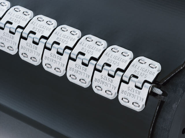 A diferencia del proceso anterior, las grapas permiten que los extremos de la correa se conecten y desconecten en lugar de una correa “sin fin” que está empalmada de forma permanente. En este caso, se combina la resistencia y durabilidad con asequibilidad y fácil instalación.