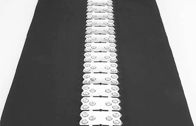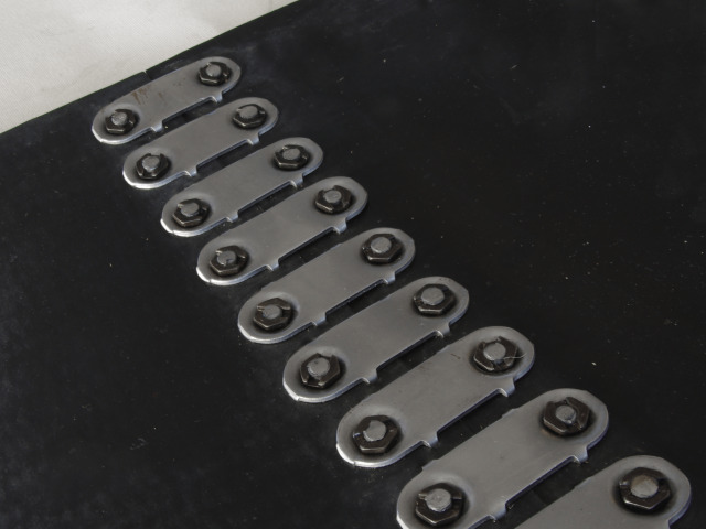 - Sujetadores de placa sólida: consisten en una lámina que se instala en ambos extremos de la correa y se sujeta entre sí. Se utilizan con poleas más grandes para aplicaciones que requieren un empalme sin tamices y se instalan en la banda mediante pernos, remaches o grapas.